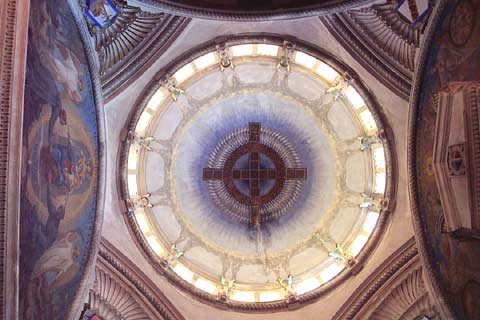 Looking up into a cathedral's dome in Portoferraio