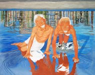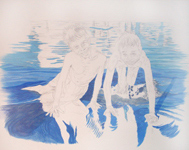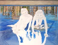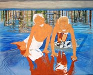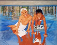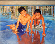 See how my Bali Kids - who take a splash in the sea at Legian - progressed from the first sketch in November 2002 to the finished painting in October 2004. |
