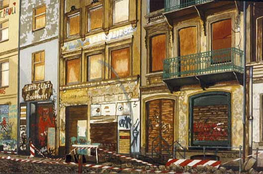 Hafenstrasse" Decay in Harbour Street, Acrylic on cardboard, size: 60 x 40 cm