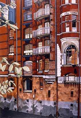Speicher Freihafen", redbrick warehouse, Acrylic on cardboard, size: 40 x 60 cm