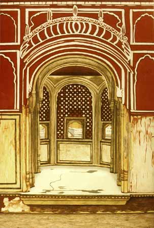 Hawa Mahal - The Palace of the winds" Acrylic on board, size: 54 x 36 cm