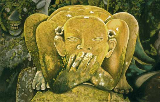 "Bali Patung" balinese stone-figure, Acrylic on cardboard, size: 57X37cm