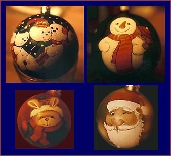 Funny snowman, downhill rabbits and blinking Father Christmas are ideal decorations for Christmas "balls".