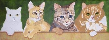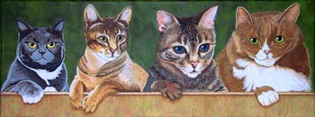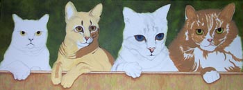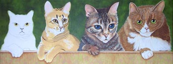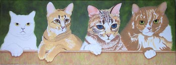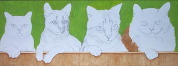 Von der Skizze bis zum (noch nicht) fertigen Bild sehen Sie hier mein Porträt der vier Katzen über dem Zaun. | ||||||||