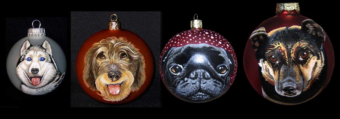Acrylmalerei auf Weihnachtskugeln - Hundeporträts